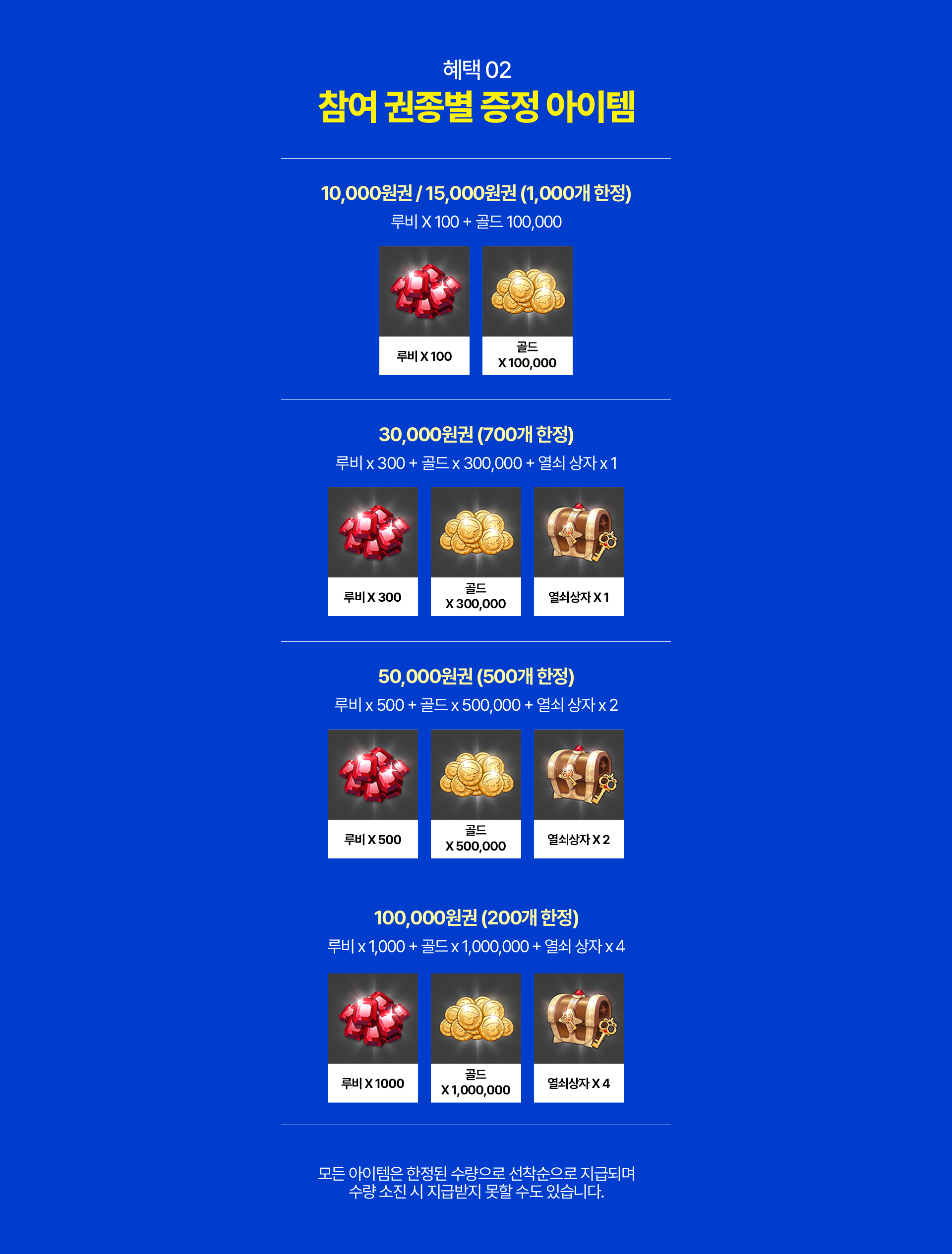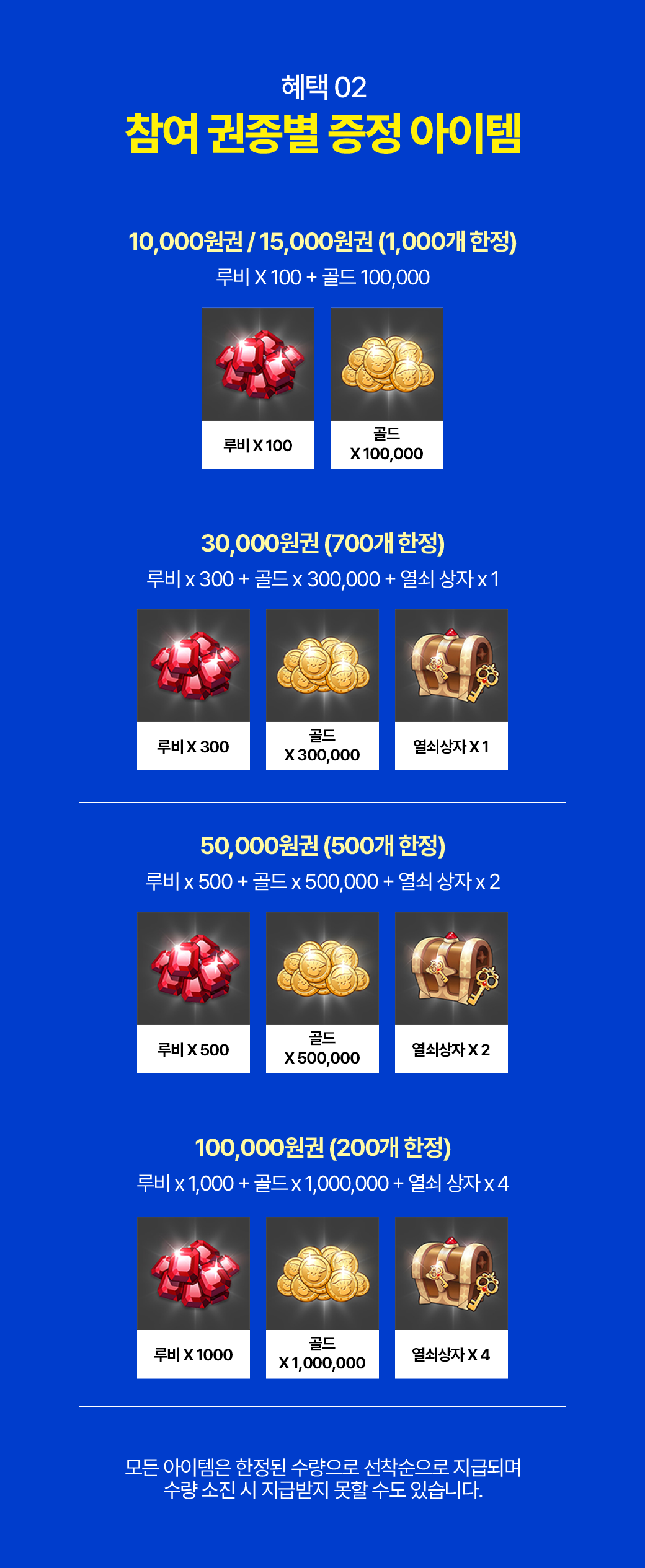 - 본 이벤트 혜택 2의 아이템 증정은 참여 권종 및 참여 계정당 각 2회입니다.